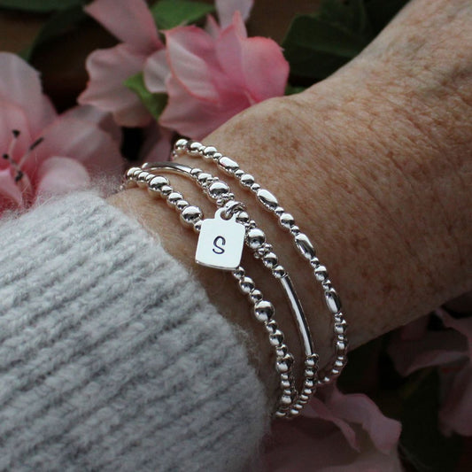 Sterling Silver Stacking Bracelet with Isla Initial Charm - Special Edition