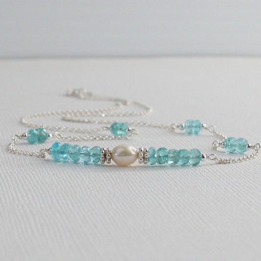 Apatite Pearl & Sterling Silver Necklace - Ocean Mist