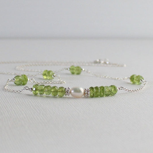 Peridot Pearl Sterling Silver Necklace - Meadowlite