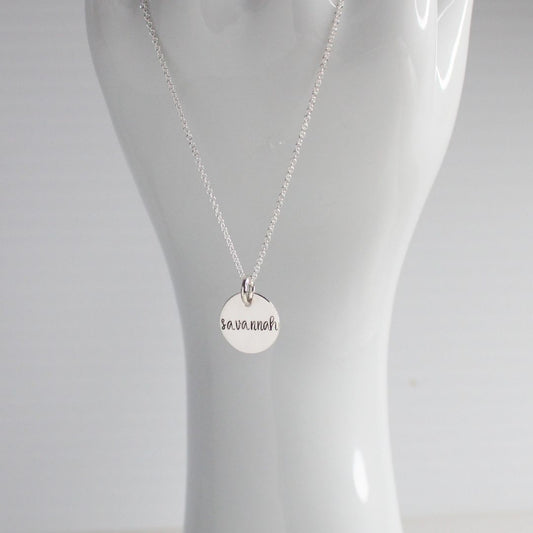 Hand Stamped Name Pendant Necklace - Eva Love Drop