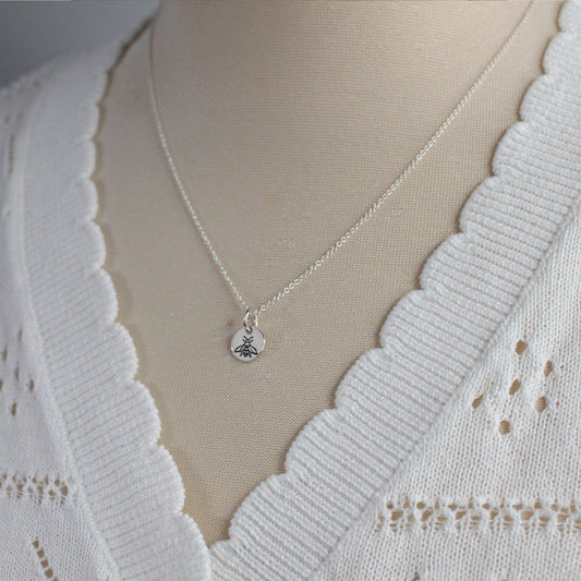 Hand Stamped Queen Bee Pendant Necklace - Eva Love Drop