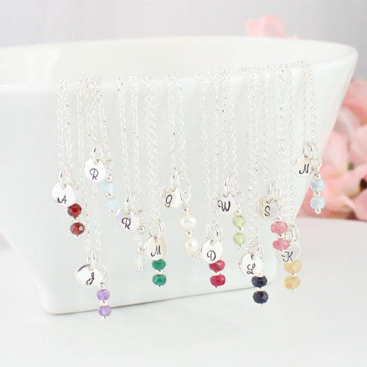 Personalized Initial Birthstone Pendant Necklace - Ella Love Drop