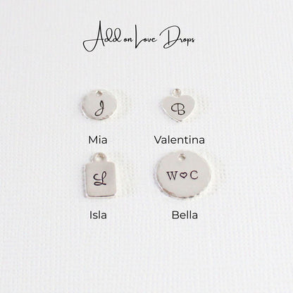 To make it even more personal, add a Love Drop hand stamped with the initial of your choice.